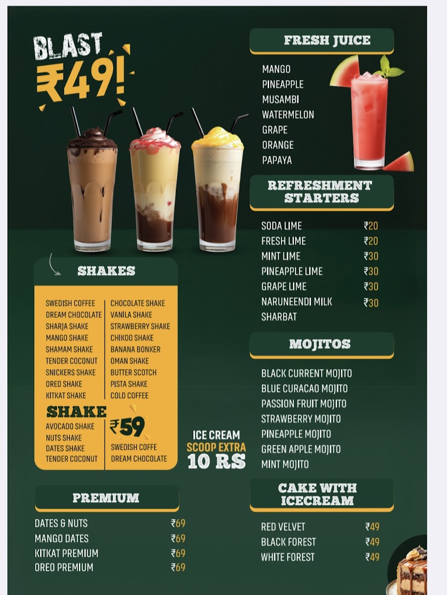 - Fruit Salads and Premium Treats: Indulge in options like Dates & Nuts Shake and delicious ice cream scoops, offering something for everyone.